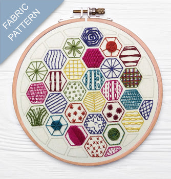 - Hexagon Sampler, Pre Printed Embroidery Fabric Panel PLUS PDF Pattern(10)