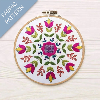 Sold out - Florally, Pre Printed Embroidery Fabric Panel PLUS PDF Pattern
