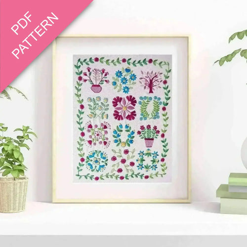 Embroidery PDF Pattern for the 'Baltimore Stitchery' hand embroidery Design with full colour photos and a step by step process.