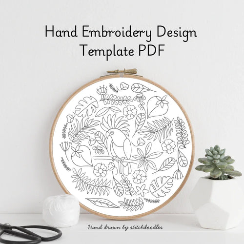 The Cockatoo Parrot hand embroidery template: