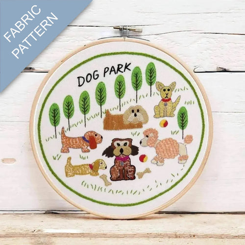 Dog Park, Pre Printed Embroidery Fabric Panel Pattern fits nicely in a 7 inch hoop.