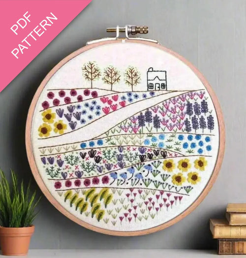 The Flower Meadow Cottage Hand Embroidery Pattern is a PDF which once purchased will be available for you to download instantly.