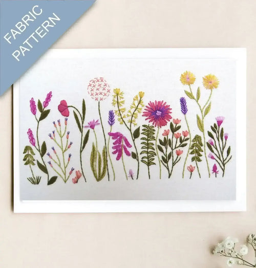 A 12 inch square Fabric Panel Pre Printed with the 'Meadow Flowers' hand embroidery Design.