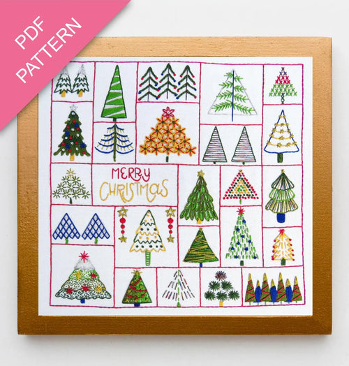 Embroidery PDF Pattern for the 'Oh Christmas Tree' design with full colour photos and a step by step process.