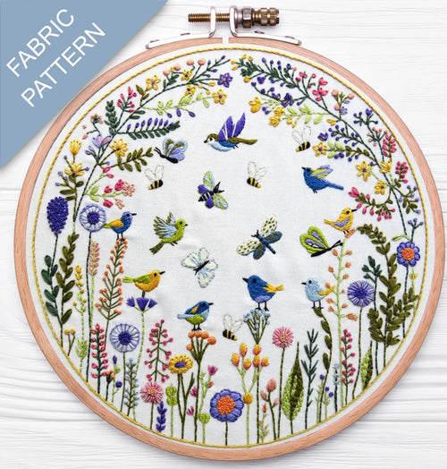 Celebrate nature's busiest guests with Pollinator Party. This vibrant embroidery artwork features bees, butterflies, birds, and flowers working together in harmony.