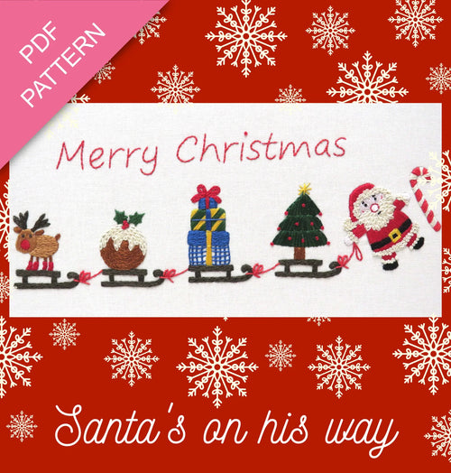 Embroidery PDF Pattern for the 'Santa's on his Way' with full colour photos and a step by step process.
