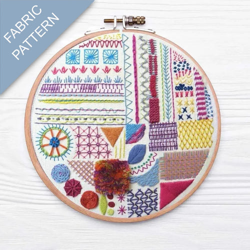 This Stitch Fun Pre Printed Embroidery Fabric Pattern is the perfect way to start your embroidery journey. The sampler includes over 30 different stitches, each printed on high-quality cotton fabric. All you need to do is follow along with the clear step-by-step tutorials available online at the Stitchdoodles blog.