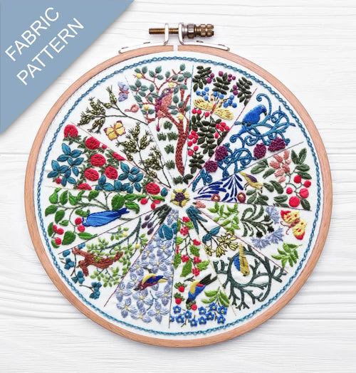 - 15 inch square Fabric Panel Pre Printed with 'Year Inspired by Voysey' hand embroidery Design.