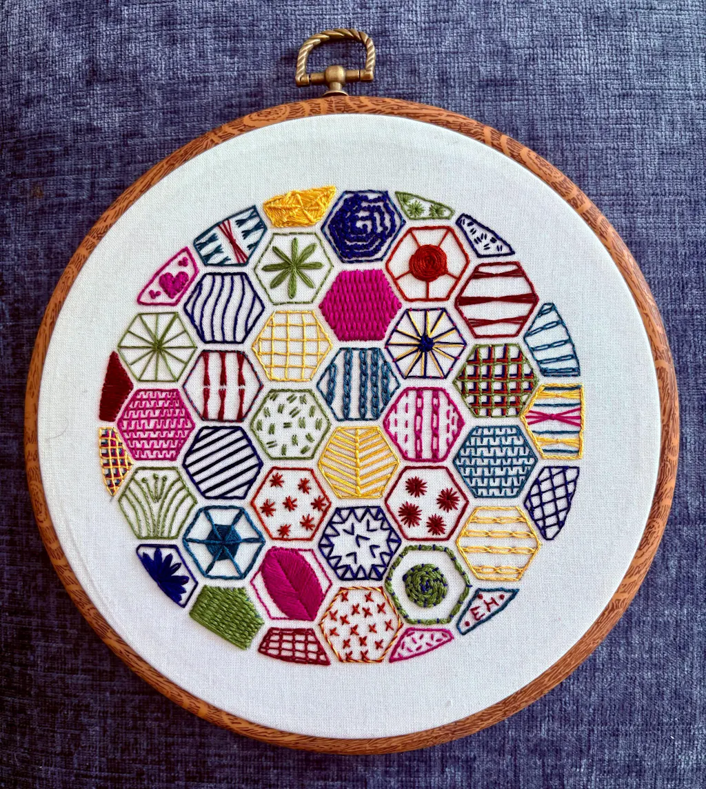 This Hexagon Sampler Embroidery Kit for Beginners is the best kit to get you started on a fabulous journey with Hand Embroidery