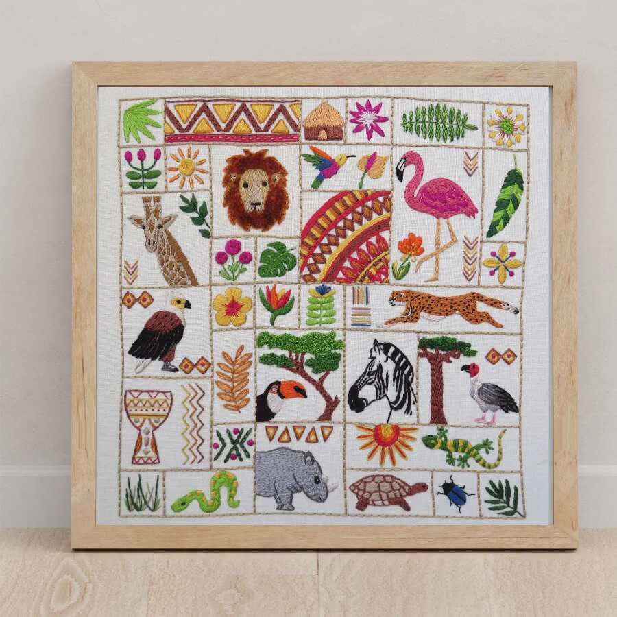 Escape to Africa Hand Embroidery Kit , Embroidery Kit , StitchDoodles , Embroidery, embroidery hoop, embroidery hoop kit, Embroidery Kit, embroidery kit for adults, embroidery kit fro beginners, embroidery pattern, hand embroidery, hand embroidery fabric, hand embroidery kit, hand embroidery seat frame, modern embroidery kits, nurge embroidery hoop, nurge hoops, nurge seat stand, Printed Pattern, wildlife embroidery , StitchDoodles , shop.stitchdoodles.com
