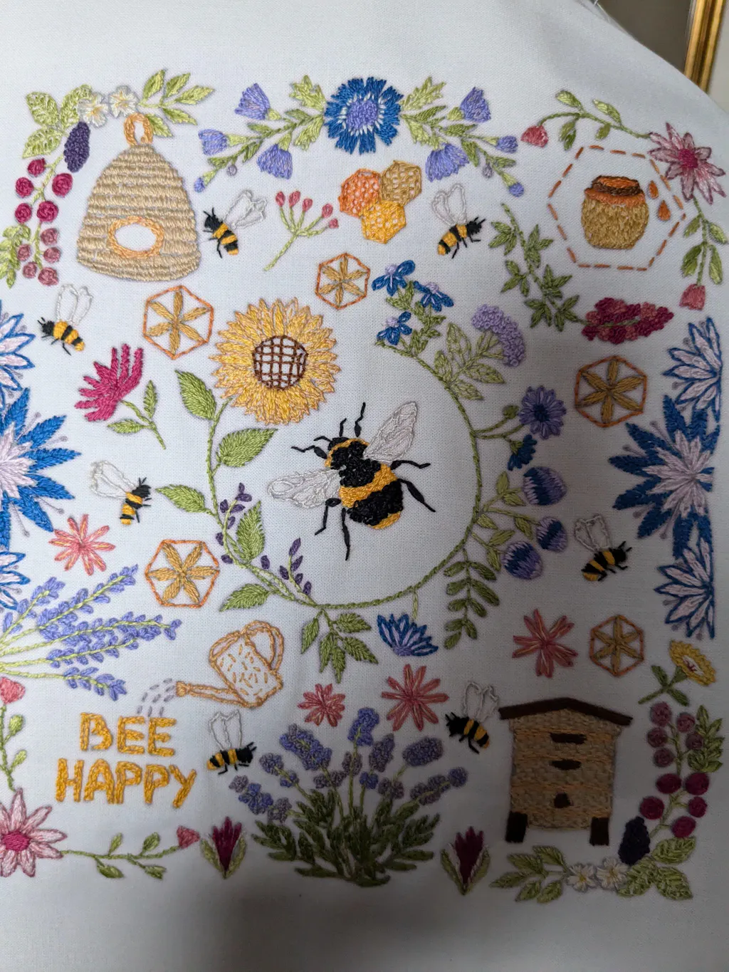 Hi there! Thank you so much for taking the time to leave us such a lovely review. We're so glad to hear that you enjoyed working with the Bees and Blossoms fabric panel and that you found the instructions easy to follow. We love that you learned a new stitch and we hope it added an extra special touch to your project. Thank you for choosing our product, we truly appreciate it. Happy stitching! 😊