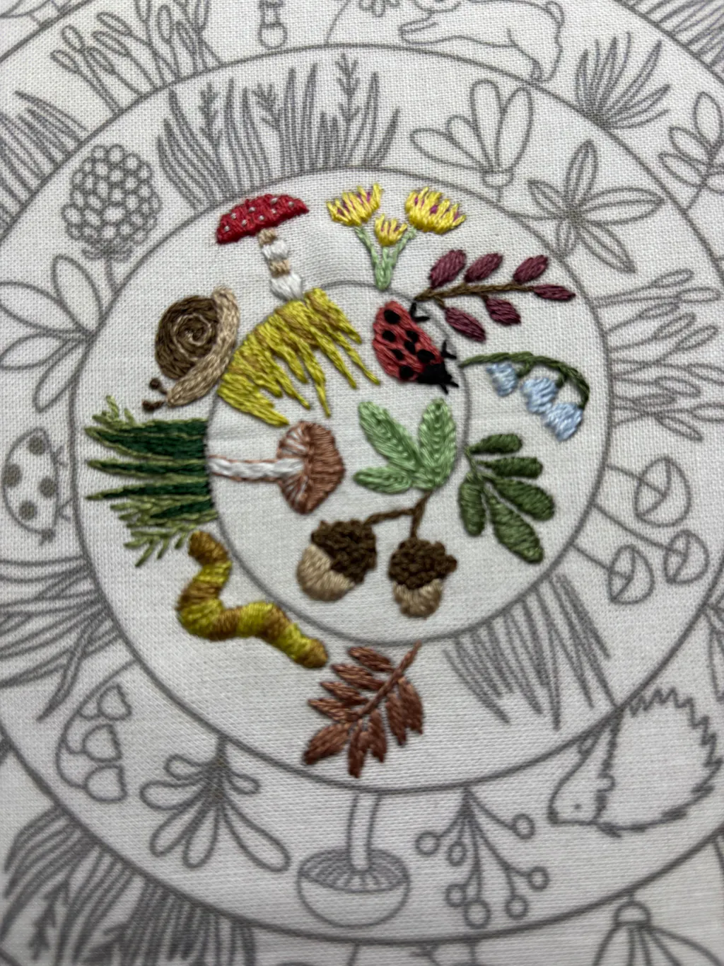- Embroidery PDF Pattern for the 'Round & Round the Woodland' hand embroidery Design with full colour photos and a step by step process.