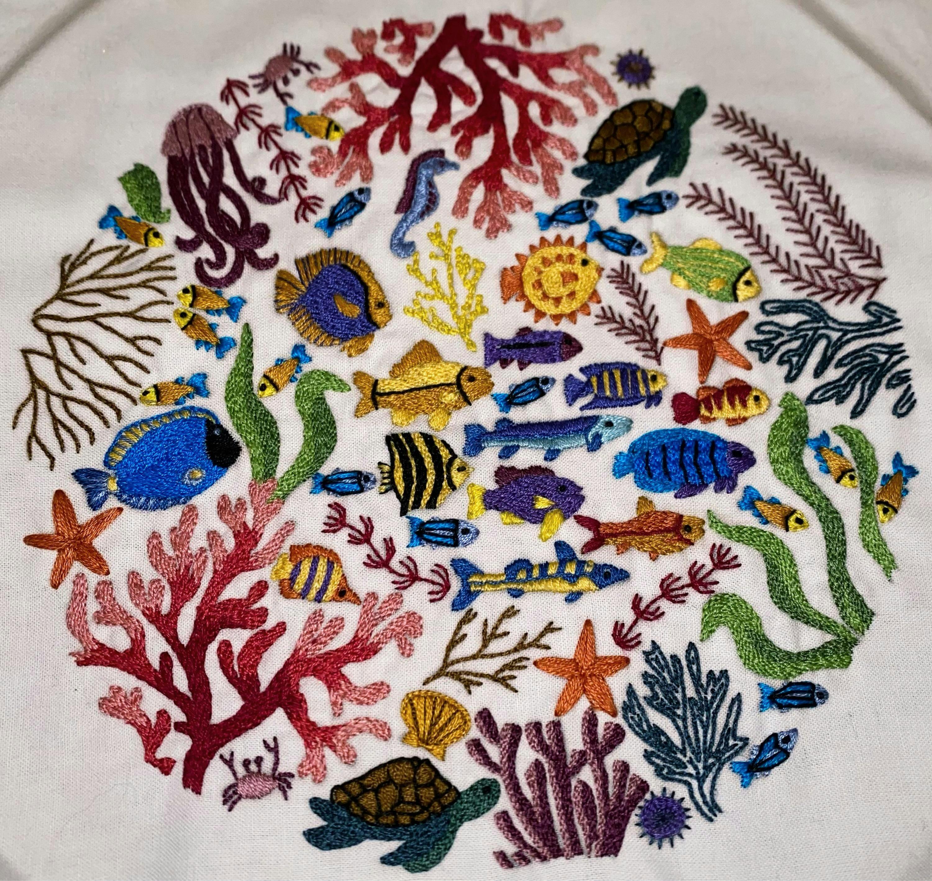 I’ve had my eye on a Stitchdoodles kit for a long time before buying one, and it was so worth the wait! The materials are top notch and the printed instructions are clear. Beautiful design, lots of fun to stitch. My only wish is that the pre-printed design were removable in some way, either via heat or washing.