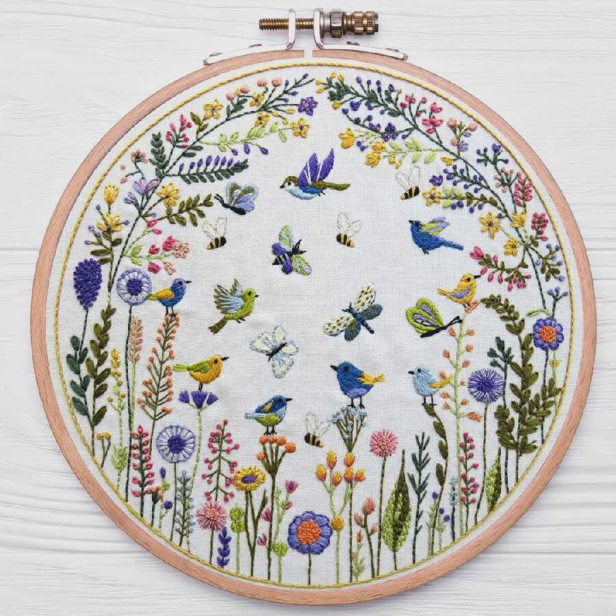 Todo incluido según el Kit de Bordado a Mano Premium más un aro de madera Nurge de 8 pulgadas