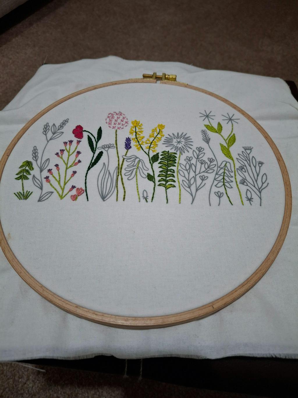 Plus Embroidery PDF Pattern for the 'Meadow Flowers Pattern with full colour photos and a step by step process.